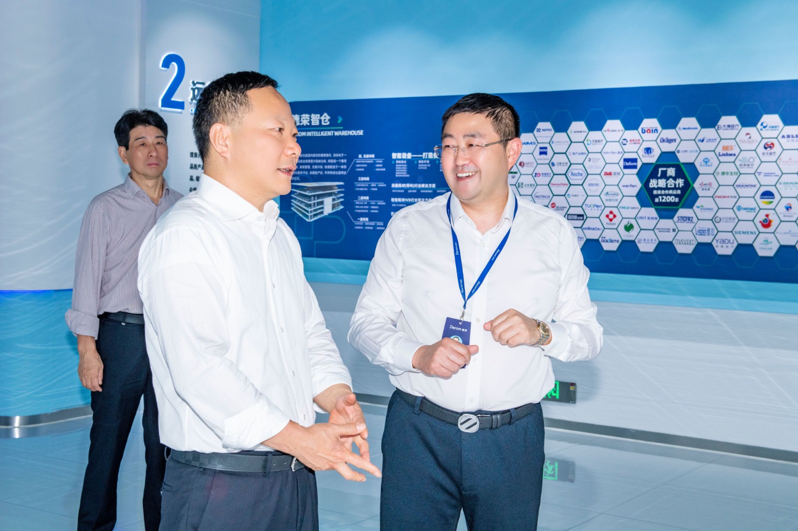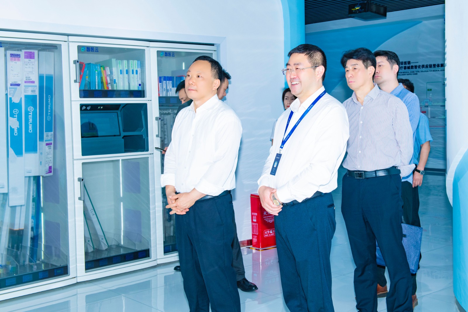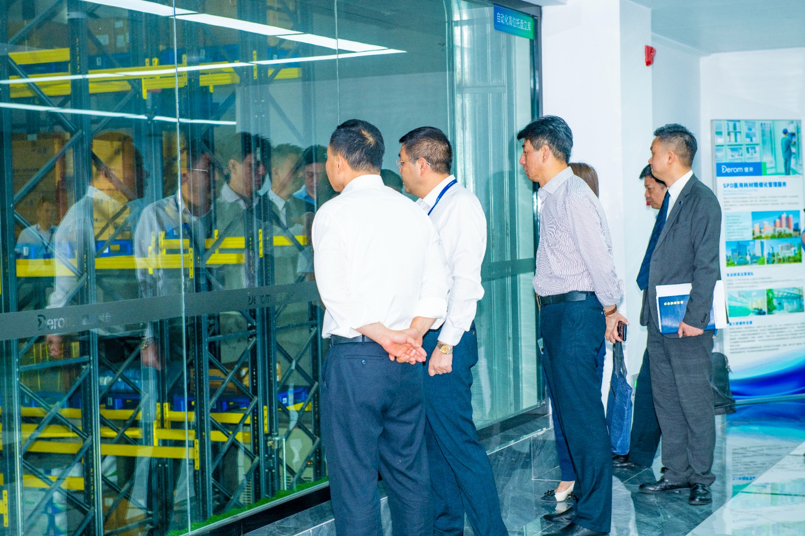 調(diào)研組一行先后參觀了德榮醫(yī)療數(shù)智科技館、德榮智倉“一倉三庫”體系和院外倉等,廖毅詳細(xì)介紹了公司的發(fā)展歷程、產(chǎn)品業(yè)務(wù)等,并對(duì)德榮醫(yī)療器械一體化供應(yīng)鏈?zhǔn)侨绾螌⑨t(yī)院、生產(chǎn)廠商、物流企業(yè)、監(jiān)管機(jī)構(gòu)等各端口聯(lián)通作了著重闡述。曾勝表示,為德榮智倉的高效率、智能化點(diǎn)贊,德榮完成了醫(yī)院難以做到的工作,讓醫(yī)護(hù)人員回歸醫(yī)療本質(zhì),為醫(yī)院降低了運(yùn)營成本。